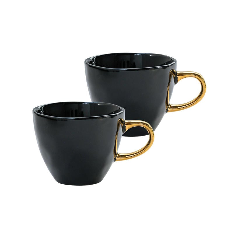 Ik ben fan van het serviesgoed van Urban Nature culture. De organische vormen, de goudkleurige accenten, de schattige pastelkleuren. Of juist in zwart, zoals deze mini mokken voor je dagelijkse espresso shot!